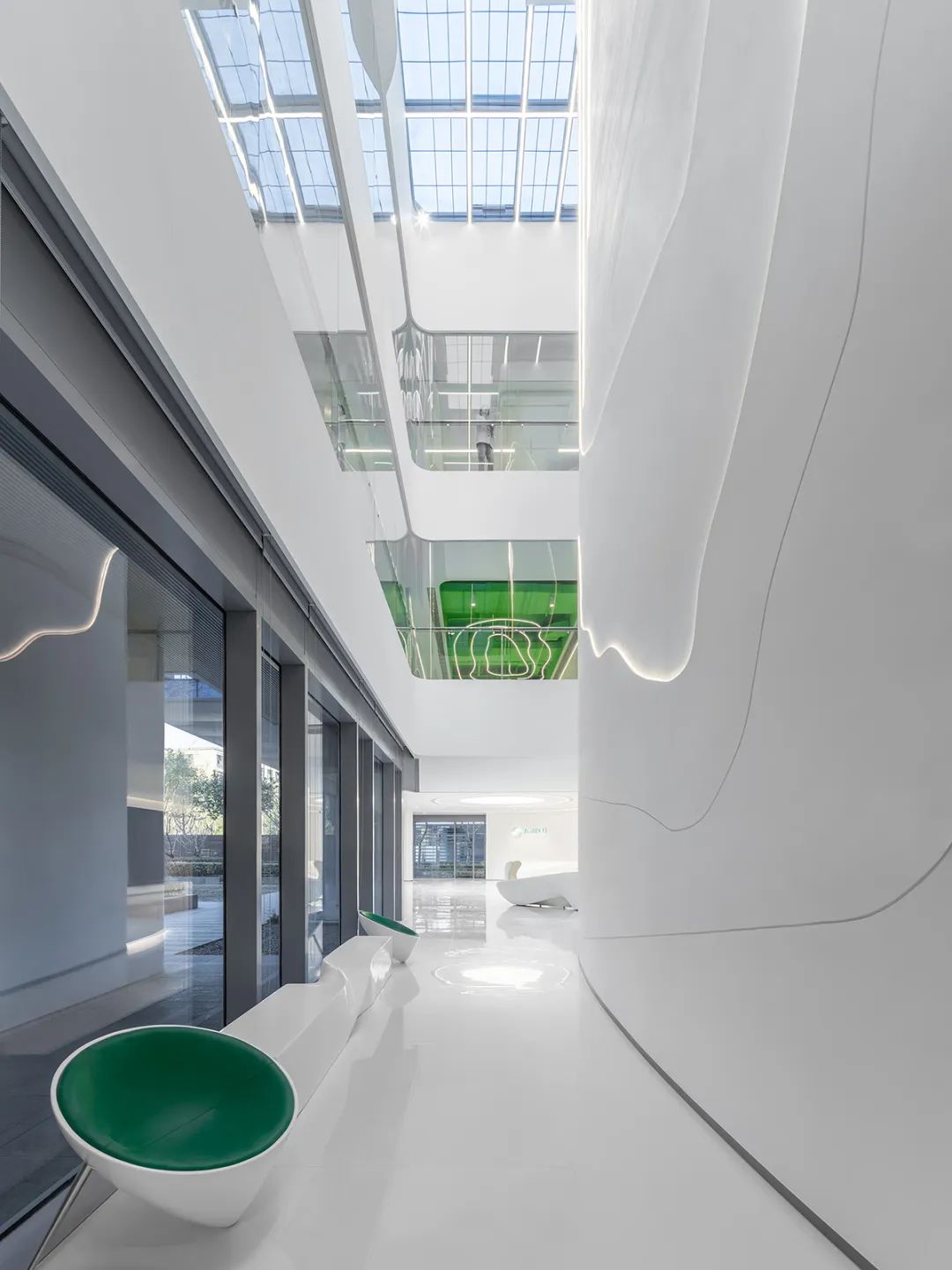 Ce Design rompt avec les stéréotypes des espaces de bureaux traditionnels et fait résonner émotionnellement le bâtiment avec les gens par le flux de lumière et d'ombre, faisant de l'expérience de marche elle - même un vecteur important de transmission d'idées. Alors que la lumière verte et l'ombre se déplacent lentement entre les escaliers, comme si l'on pouvait voir les forces de la vie continuer à croître dans l'espace, comme le gardien éternel de la santé de la vie dans la profession médicale.