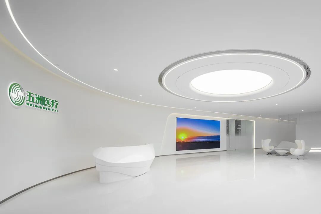 Dans la conception de l'espace du siège social de Wuzhou Medical à Hangzhou, la couleur et l'ombre ne sont plus de simples éléments décoratifs, mais deviennent un langage silencieux qui transmet les valeurs fondamentales de l'entreprise. Le blanc pur en tant que teinte de base de l'espace est étalé "sans lésion", non seulement pour créer un sentiment de pureté caractéristique de la scène médicale, mais aussi pour fusionner étroitement la passion de l'entreprise pour la santé et la vie avec un sentiment humain riche grâce à des effets visuels perméables - lorsque la lumière est déversée à travers le mur - rideau en verre dans l'intérieur, ce sentiment de pureté se traduit par une température tactile, permettant à tous ceux qui entrent dans l'espace de ressentir intuitivement la sincérité du dialogue entre la marque et la vie.